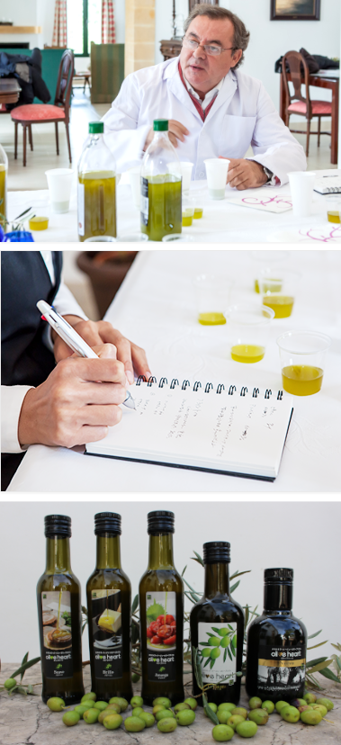オリーブハートは、フレッシュな香りが特長な日本人が好むフルーティなテイストの美味しいオリーブオイルです。5品種のオリーブの実をブレンドしており、その監修を世界的オリーブオイルの権威ヘロニモ・ディアス氏に依頼しています。さらに最終的な味決めは社内オリーブオイルソムリエが実施しています。
