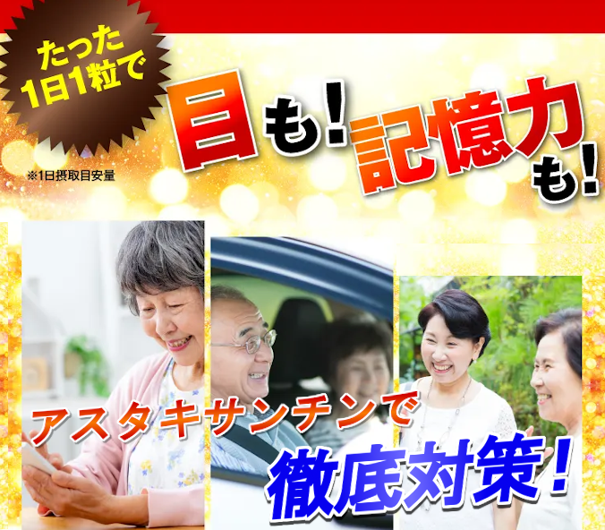 本品にはアスタキサンチンが含まれます。アスタキサンチンは目のピント調節機能を助け、パソコンやスマートフォンの使用による一時的な目の疲労感を軽減する機能、VDT作業中の中高年の方の視力の維持をサポートする機能が報告されています。なお、近視や遠視などの屈折異常を改善するものではありません。さらに、記憶力に衰えを感じている健常な中高年の認知機能の一部である視覚的な記憶力(図形を認識し、記憶してから思い出す力)の維持に役立つ機能が報告されています。